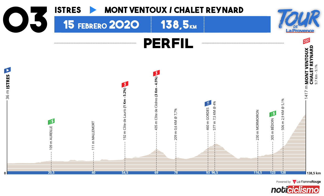 15 de febrero (Etapa 3) Istres › Mont Ventoux/Chalet Reynard (140.2 Km)